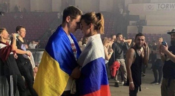 السوسنة - تداول رواد مواقع التواصل الإجتماعي صورة لشاب يرتدي العمل الأوكراني على كتفيه، وفتاة ترتدي العلم الروسي، وهما يقفان بحب وعاطفة كبيرة مقابل بعضهما، وذلك تزامناً مع إعلان الرئيس الروسي فلاديمير بوتين بدء العمليات العسكرية ضدّ أوكرانيا.
