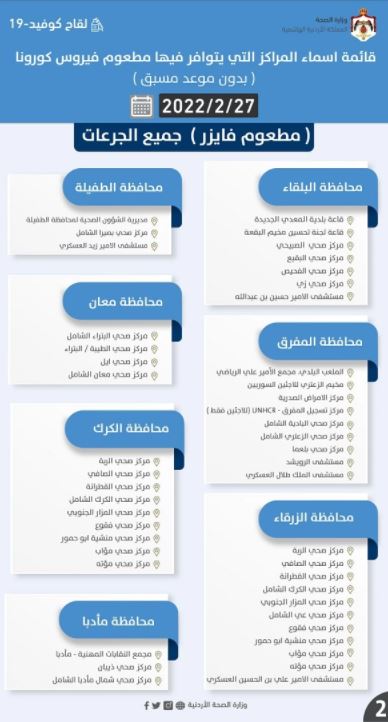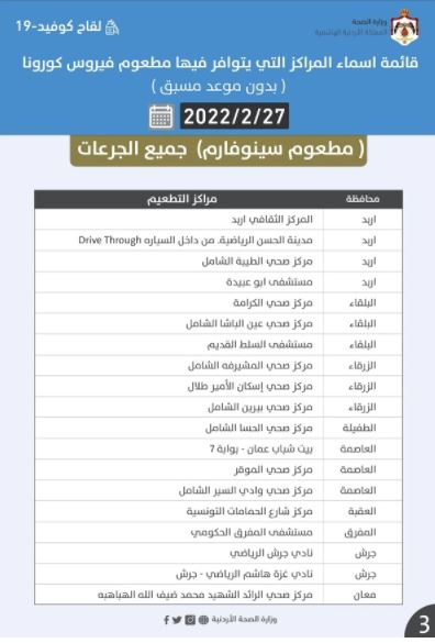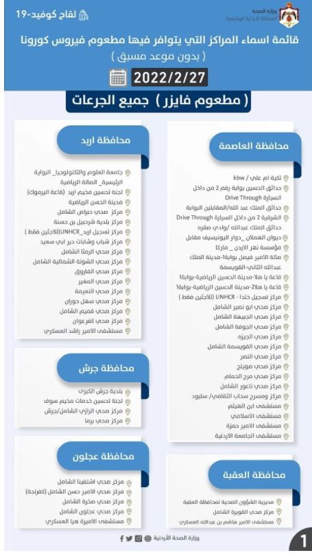 الكشف عن مراكز تطعيم كورونا الأحد - أسماء