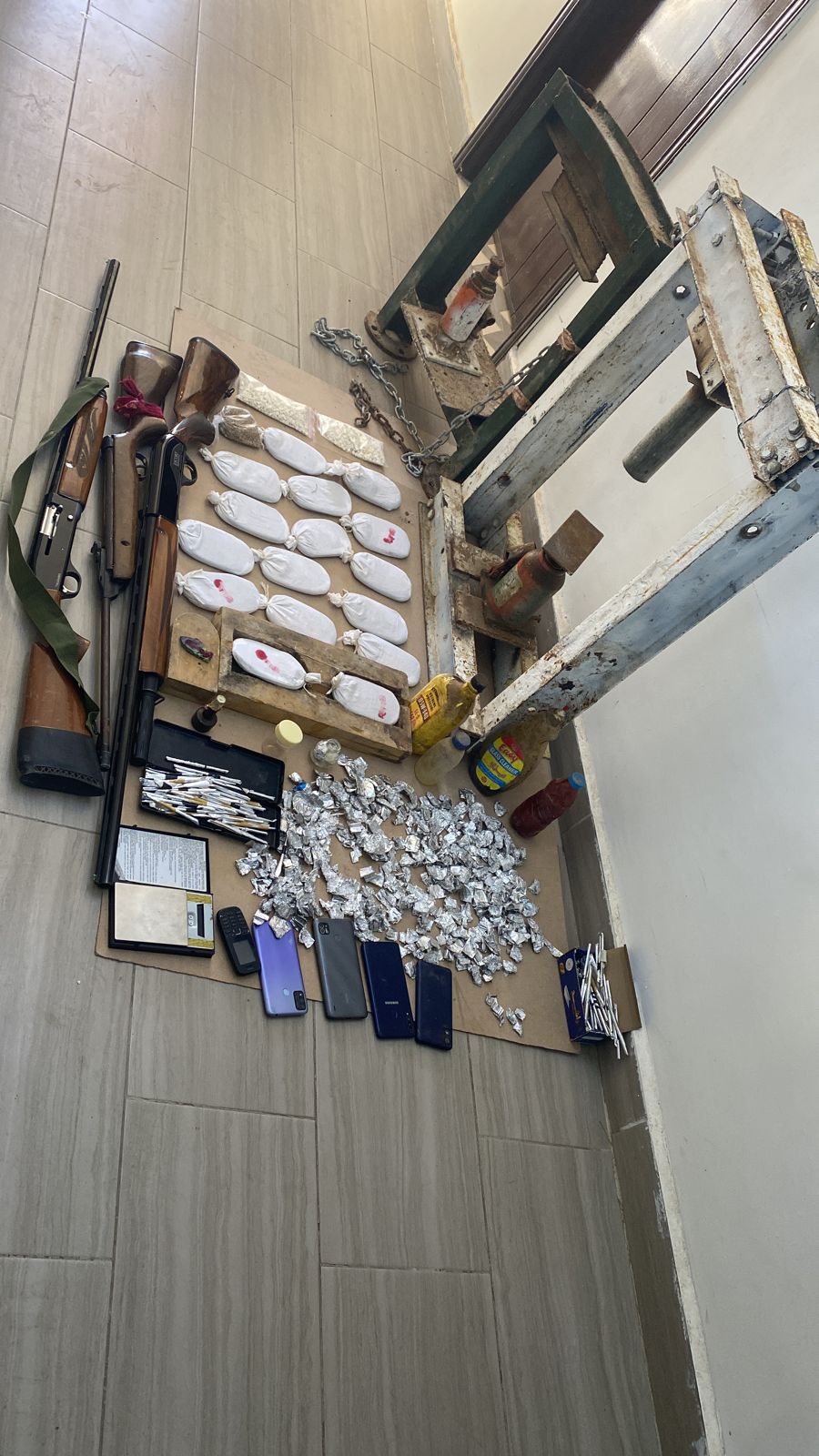 وأكد الناطق الإعلامي أن الحملة أفضت لإلقاء القبض على أربعة أشخاص من تجار ومروجي المواد المخدرة من بينهم شخص من جنسية عربية وضُبط بحوزتهم 16 كف حشيش و 2000 حبة مخدرة وكميات من مادة الكريستال المخدرة وثلاثة أسلحة نارية .