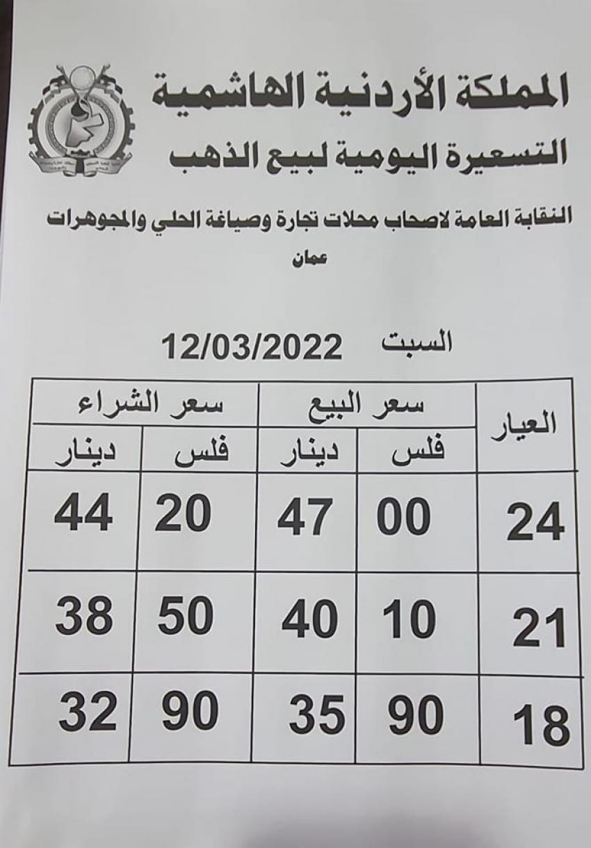 أسعار الذهب في الأردن .. التسعيرة الجديدة