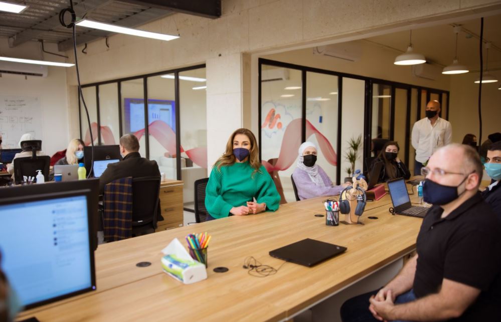 الملكة رانيا العبدالله تزور شركة مقسم لحلول الاتصالات السحابية
