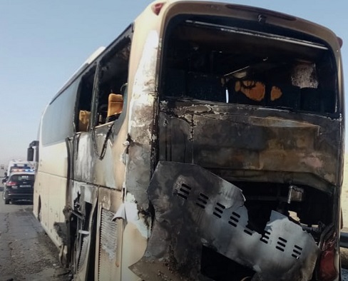 نجاة 51 راكباً من حادث احتراق حافلة بنزول النقب