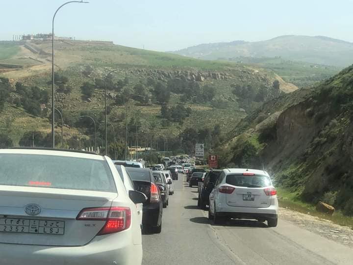 السوسنة - يشهد طريق اربد - عمان والطرق المؤدية الى محافظات الشمال وجميع الطرق بإتجاه المناطق الشمالية و الاغوار ازمة سير خانقة غير اعتيادية .