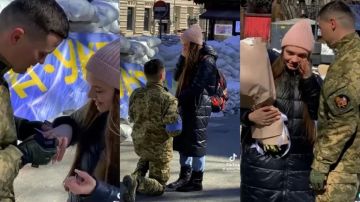 السوسنة - في واقعة اشعلت مواقع التواصل، فاجأ جندي أوكراني حبيبته بأن تقدم لطلب يدها قرب حاجز عسكري في مدينة أوديسا جنوب أوكرانيا.