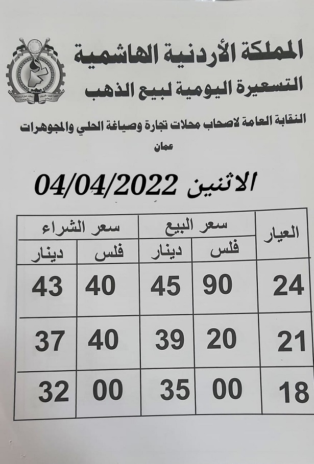السوسنة - استقرت أسعار الذهب محليا الاثنين، بحسب النشرة الصادرة عن النقابة العامة لأصحاب محال تجارة الحلي والمجوهرات.