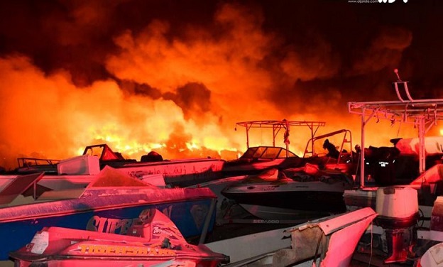 السوسنة - اندلع حريق ضخم في زوارق، مساء الاثنين، في ميناء عبد الله، بمحافظة الأحمدي في الكويت، حسب ما نقلت وكالة الانباء الكويتية "كونا "عن هيئة الموانئ الكويتية.
