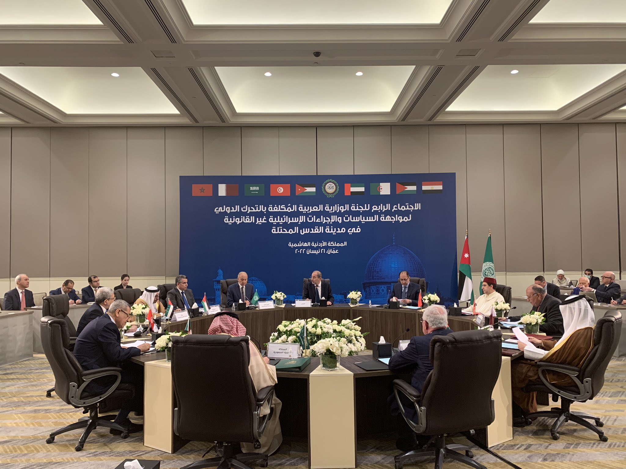 بدعوة من المملكة الأردنية الهاشمية، عقدت اللجنة الوزارية العربية المكلفة بالتحرك الدولي لمواجهة السياسات والإجراءات الإسرائيلية غير القانونية في مدينة القدس المحتلة، التي تضم في عضويتها الجمهورية التونسية، بصفتها رئيس القمة العربية الحالية الجمهورية الجزائرية الديمقراطية الشعبية، المملكة العربية السعودية، دولة فلسطين، دولة قطر، جمهورية مصر العربية المملكة المغربية، ودولة الامارات العربية المتحدة، بصفتها العضو العربي في مجلس الأمن، والأمين العام لجامعة الدول العربية، وترأسها المملكة الأردنية الهاشمية اجتماعا طارئا في عمان بتاريخ الحادي والعشرين من شهر ابريل/ نيسان 2022.