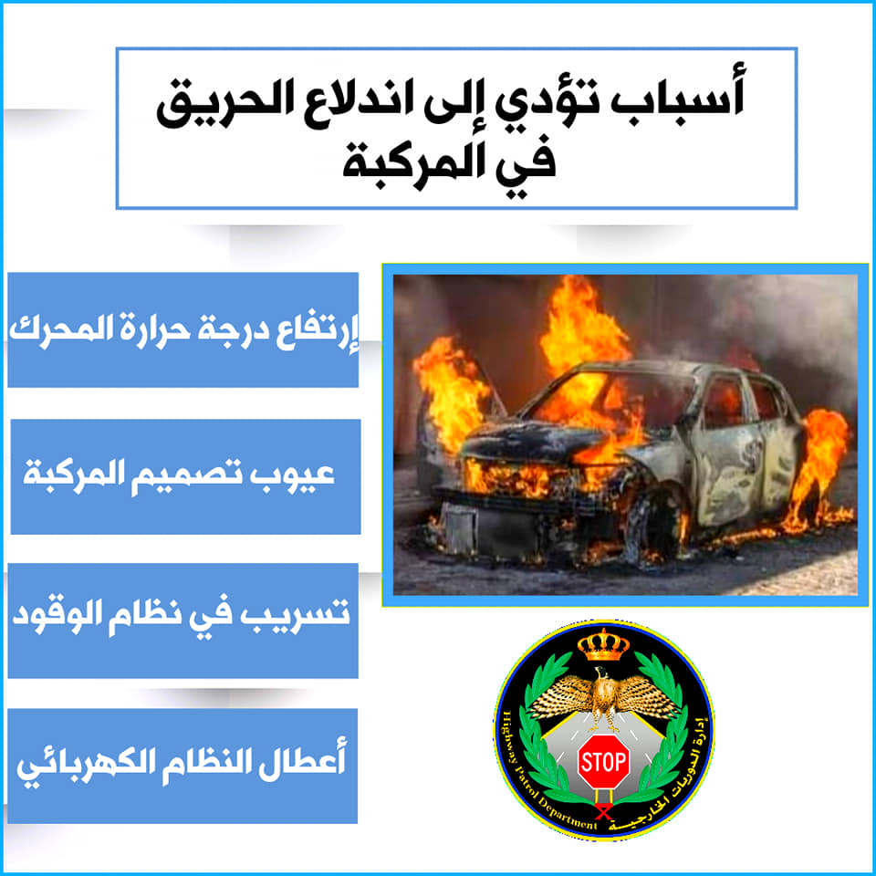 السوسنة - حذرت مديرية الأمن العام، من 4 أسباب قد تؤدي إلى خطر اشتعال المركبات في فصل الصيف.