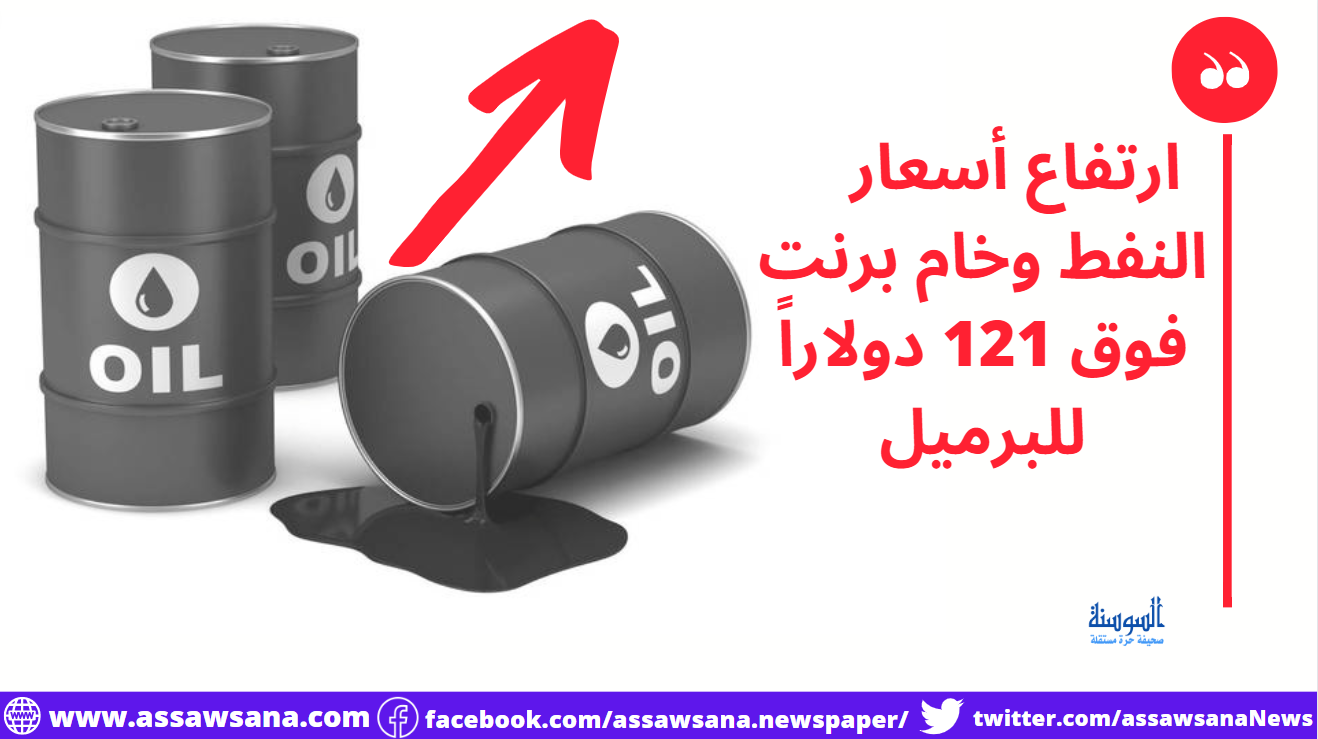 ارتفاع أسعار النفط وخام برنت فوق 121 دولاراً للبرميل