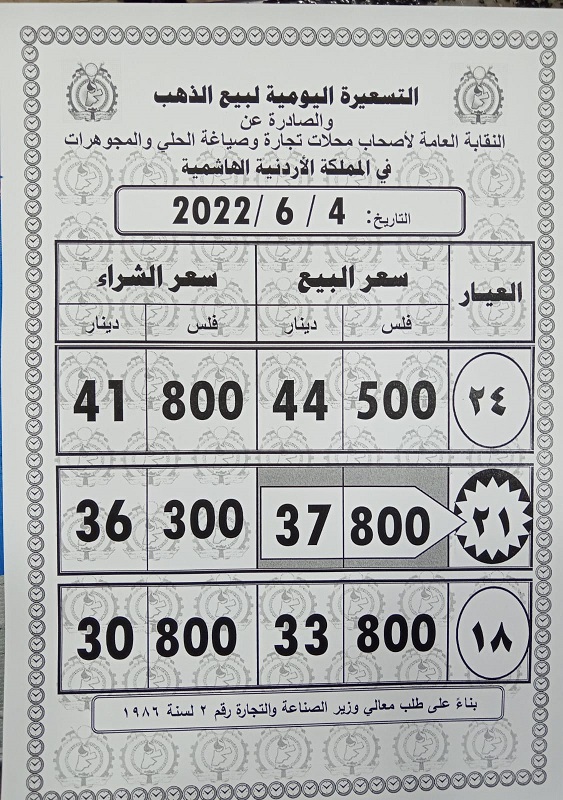 السوسنة - بلغ سعر بيع غرام الذهب عيار 21 الأكثر رغبة من المواطنين في السوق المحلية، السبت، عند 37.80 دينار لغايات الشراء من محلات الصاغة، مقابل 36.30 دينار لجهة البيع.