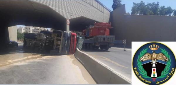 اثر تدهور خلاط محمل بالباطون .. تحويل السير من جسر ابونصير باتجاه الشمال