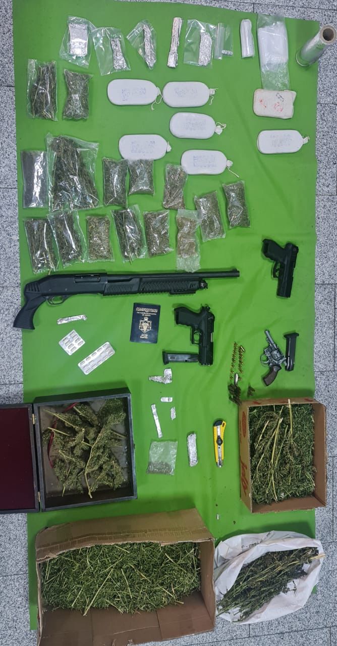 وبين الناطق الإعلامي أن قوة أمنية القت القبض في مداهمة على شقيقين وردت معلومات حول قيامهما بحيازة وبيع المواد المخدرة ، وضُبط بحوزتهما 8 كفوف من مادة الحشيش المخدرة وكميات كبيرة من مادة الماريجوانا المخدرة المعدة للبيع، وكمية من الحبوب المخدرة، وسلاحان ناريان .