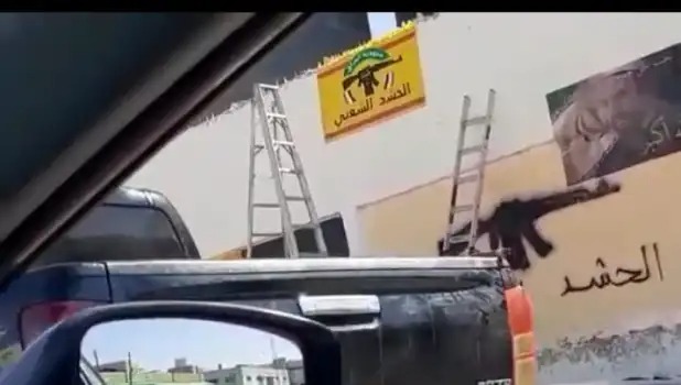 وأظهرت مقاطع فيديو رسم مجموعة من الشبان والفتيات شعارات تخص الحشد الشعبي في العراق، وصوراً تظهر قيادات سياسية إيرانية، إضافة إلى الأعلام الإيرانية.