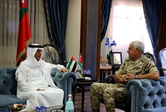وبحث اللواء الركن الحنيطي مع الضيف بحضور الملحق العسكري الإماراتي في عمّان، آخر التطورات على الساحتين الإقليمية والدولية، وأوجه التعاون والتنسيق في مجال التدريب العسكري المشترك، وسبل تعزيز العلاقات الثنائية بما يخدم مصلحة القوات المسلحة في البلدين الشقيقين.
