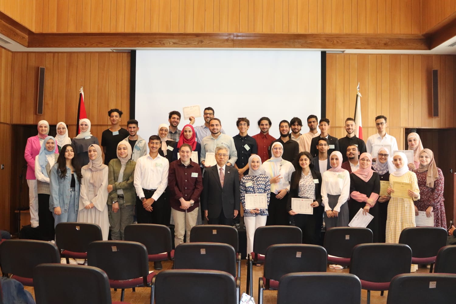 ختاما عبر سعادة السفير الياباني عن شكره للجامعات وللطلبة لاختيارهم تدريس ودراسة اللغة اليابانية متمنياً لهم المزيد من التفوق و الإبداع شاكرا لهم جهدهم المبذول.