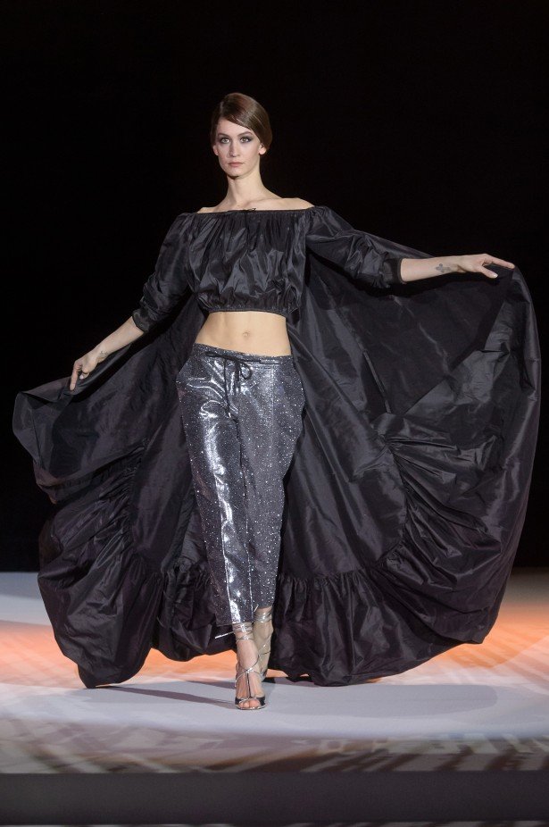 ولكن لوحظ أن الفساتين كانت نجمة هذه التشكيلة، وهي فضية أو مطرزة باللآلئ وملتصقة بالجسم، ومنها ما هو قصير أو طويل.