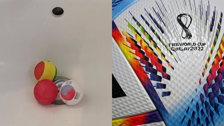 ونشر الموقع الرياضي، مقطع فيديو مصور تظهر فيه عدة كرات تحمل أعلام المنتخبات المشاركة في مونديال قطر، بحيث يقوم أحد الأشخاص برمي كرات "بينغ بونغ" تحمل أعلام كل مجموعة من البطولة في مغسلة الحمام، ومن تغلق كرته أولا "بالوعة المغسلة" هو المتأهل.