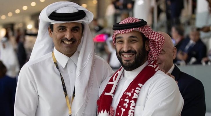 وكان محمد بن سلمان، وصل إلى الدوحة فجر الأحد، تلبية لدعوة أمير قطر تميم بن حمد آل ثاني، لحضور حفل افتتاح مونديال قطر 2022.