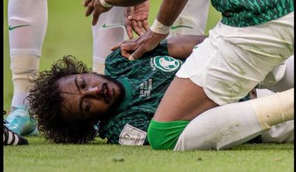 وحبس الشهراني أنفاس السعوديين والعرب وعشاق الكرة، في الدقيقة 90 من عمر المباراة، عندما سقط أرضًا بعد اصطدام عنيف مع حارس المنتخب السعودي.