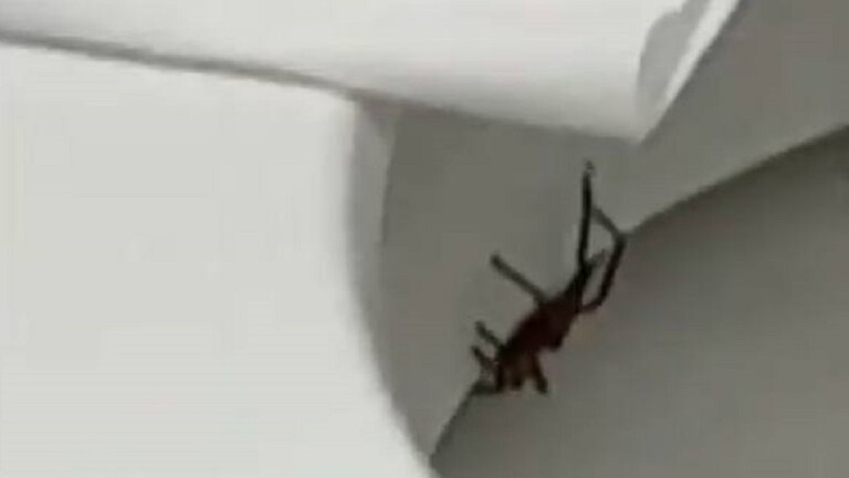 وأظهر مقطع فيديو نشره أحد النشطاء وجود عنكبوت ضخم في دورة مياه أحد المنازل السكنية.