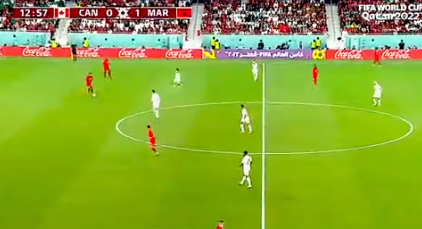 وفي الدقيقة 4 سجل حكيم زياش يضع المغرب في المقدمة بطريقة رائعة مستغلا خطا حارس كندا.