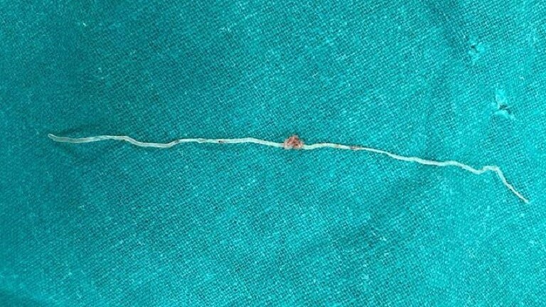 ويقول الدكتور سيرغي غريفتسيف، رئيس قسم جراحة الوجه والفكين: "وجدنا هناك كبسولة فيها دودة معوية. وتسبب نشاطها الحيوي في حدوث التهاب وحركتها تسببت في حكة مستمرة. ازلنا الكبسولة من الخد وأخرجنا منها دودة طولها 12 سم، وبعد ذلك خيطنا الشق".