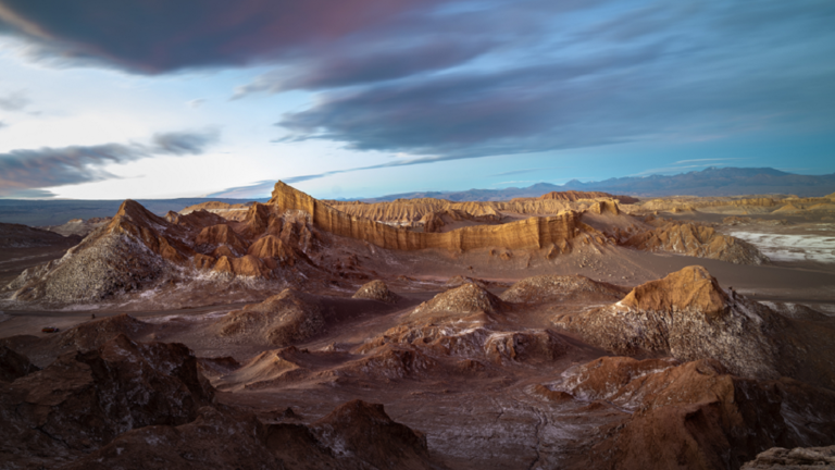 تقع صحراء أتاكاما بين جبال الأنديز وسلسلة الساحل التشيلي، ما يمنع الرطوبة من السفر إلى الداخل من المحيط الهادئ والمحيط الأطلسي.