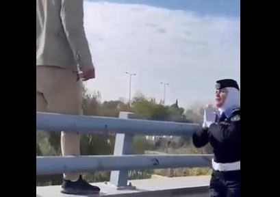 السوسنة - وثق مقطع فيديو قصير تداوله رواد مواقع التواصل الاجتماعي نجاح شرطية من كوادر إدارة السير، في إقناع شاب بالعدول عن إلقاء نفسه من أعلى جسر في عمان.