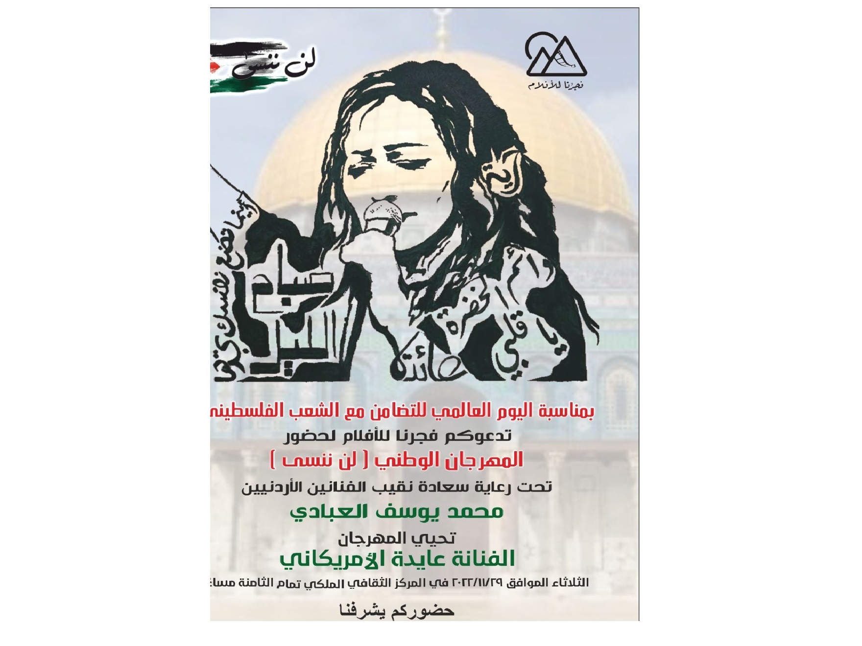 مؤسسة فجرنا للإنتاج الفني، (فجرنا للأفلام) التي تنظم الحفل الذي أكد وحدة الدم على جناحي ضفة النهر المقدس، كرمت عائلات الشهداء الأردنيين والفلسطينيين الذين امتزجت دماءهم بتراب فلسطين وتراب الأرض العربية.