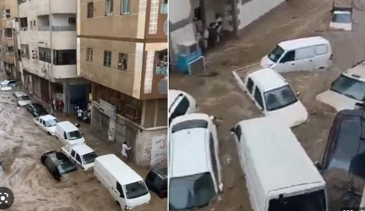 وبحسب ما أفاد به مسؤولون سعوديون فقد أغرقت السيول الشوارع وجرفت السيارات في طريقها.