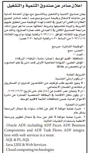 السوسنة - أعلنت عدد من المؤسسات الحكومية اليوم الثلاثاء، بالتنسيق مع ديوان الخدمة المدنية، عن حاجتها لتعيين وتعبيئة وظائف شاغرة وإجراء مقابلات شخصية.