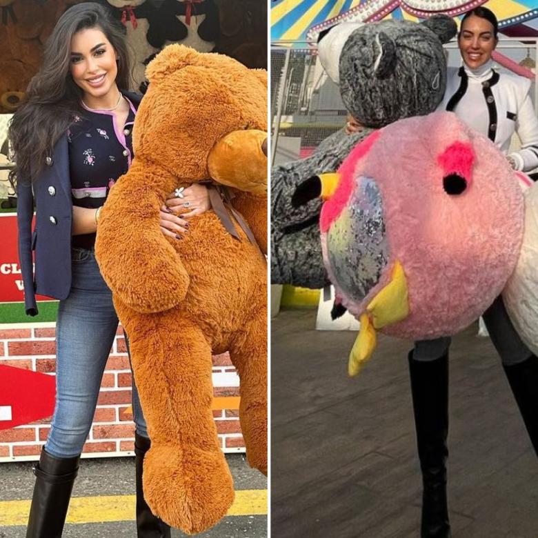 وظهرت الممثلة المصرية مرتدية، بنطال جينز وجاكيت قصير، وبوط طويل يصل إلى الركبة، وحملت دبدوب كبير، مكررة اطلالة جورجينا التي ارتدت ذات الملابس، وحملت ايضا دبدوب في صورها.