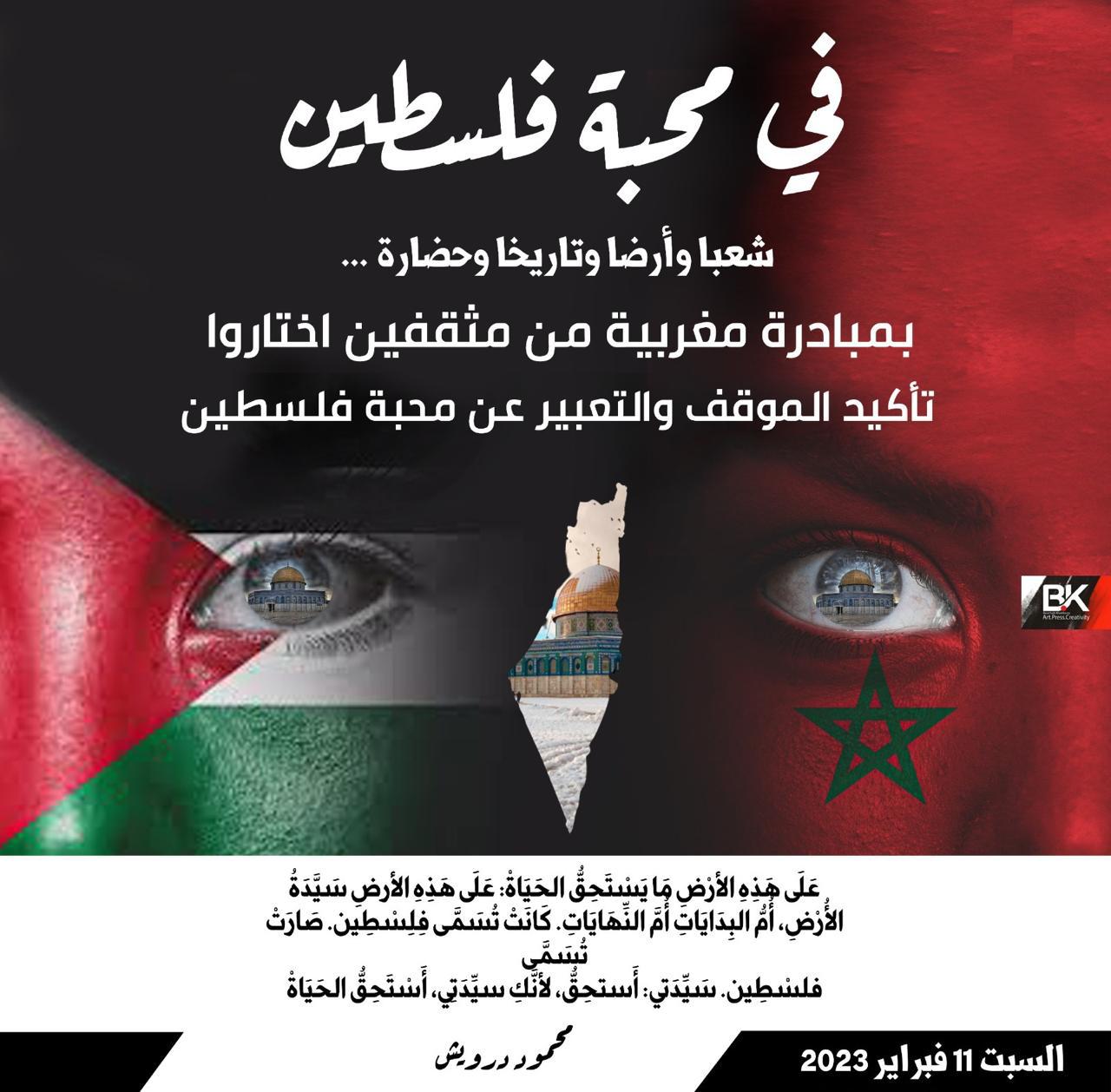 سينظم المثقفون المغاربة بعشرات من المدن المغربية، يوم السبت 11 فبراير2023 قراءات شعرية من الشعر في محبة فلسطين، من إبداعات مغربية وفلسطينية وعربية.