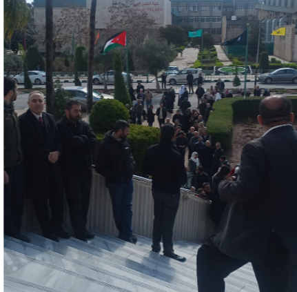 وعبر المشاركون عن استهجانهم من نهج التضييق على الكادر الإداري في الجامعة ومحاولة منعهم من المشاركة في الوقفات الاحتجاجية والتعبير عن رأيهم والدفاع عن حقوقهم الذي كفله لهم الدستور الأردني.