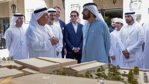 واطلع بن راشد على التصور المبدئي للتصميم المحتمل للمحطة الأولى للتاكسي الجوي، بالقرب من مطار دبي الدولي، التي تتكامل مع وسائل النقل الجماعي المختلفة.