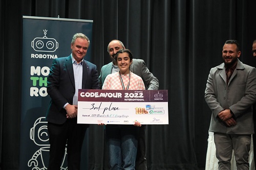 وقدمت روبوتنا خلال الحفل منحا تشجيعية للفائزين للمشاركة في أولمبياد كرة قدم الروبوتات الذي ستنفذه الشركة بالتعاون مع منظمة "بلان إنترناشونال".