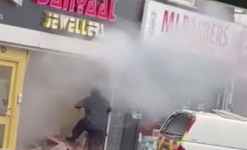 وسرعان ما اقتحم اللصوص المتجر وسرقوا المجوهرات قبل أن يلوذوا بالفرار.