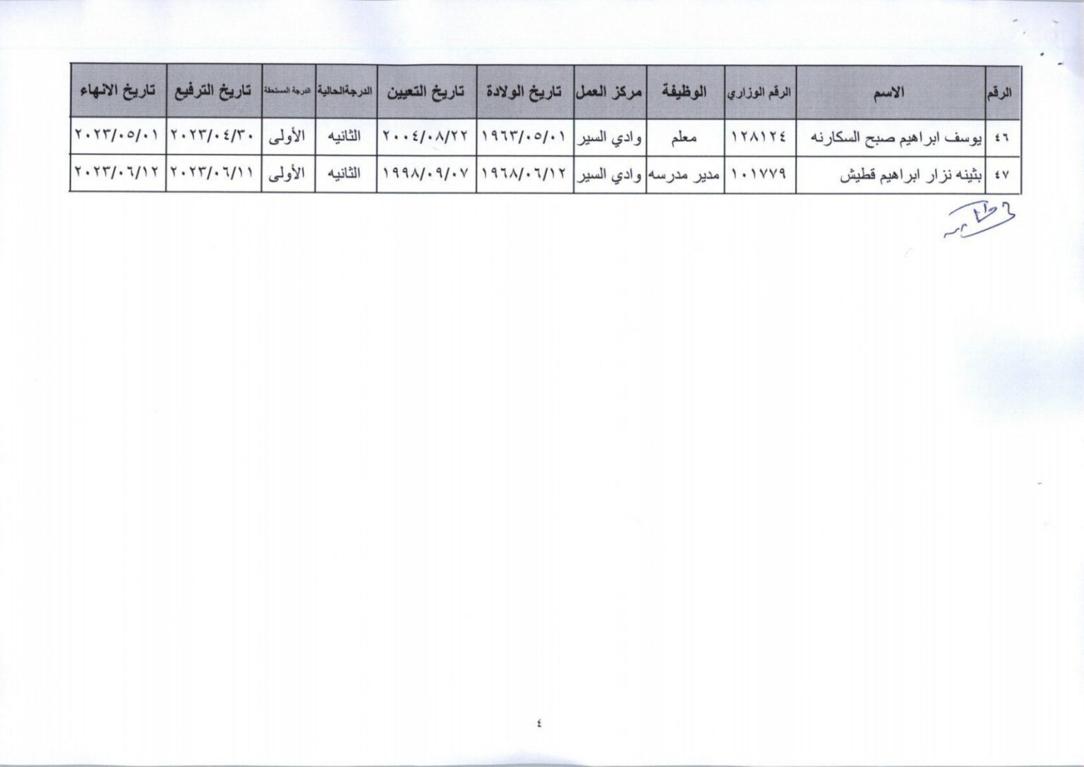 وشمل القرار 47 موظفا، “بناء على تنسيب الأمين العام للشؤون الإدارية والمالية، قررت إنهاء خدمات المذكورين في الكشف المرفق لبلوغهم السن القانونية اعتبارا من التاريخ المبين إزاء اسم كل منهم”.
