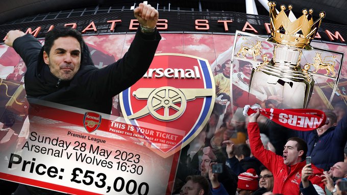 وأصدر نادي أرسنال تذاكر المباراة الختامية بالدوري، ضد فريق الذئاب حيث نفدت جميع التذاكر المتاحة على الفور في ثوان، ليبدأ جنون الأسعار بالظهور على مواقع ترويج التذاكر الإلكترونية، ليصل سعر التذكرة الواحدة إلى 53 ألف جنيه استرليني (28 ألف يورو).