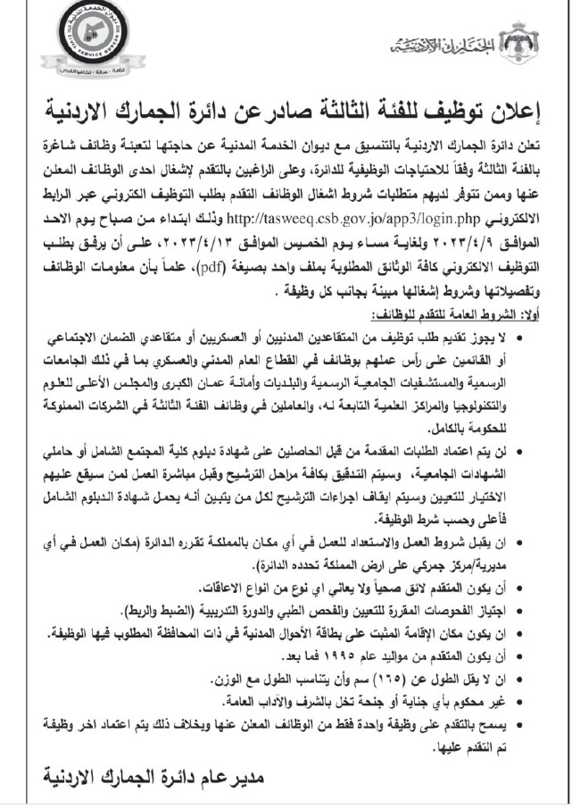 السوسنة - أعلنت وزارات ومؤسسات حكومية بالتنسيق ديوان الخدمة المدنية عن وظائف شاغرة .