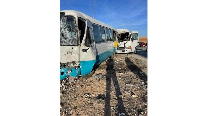 20 إصابة بتصادم 4 حافلات في مؤتة