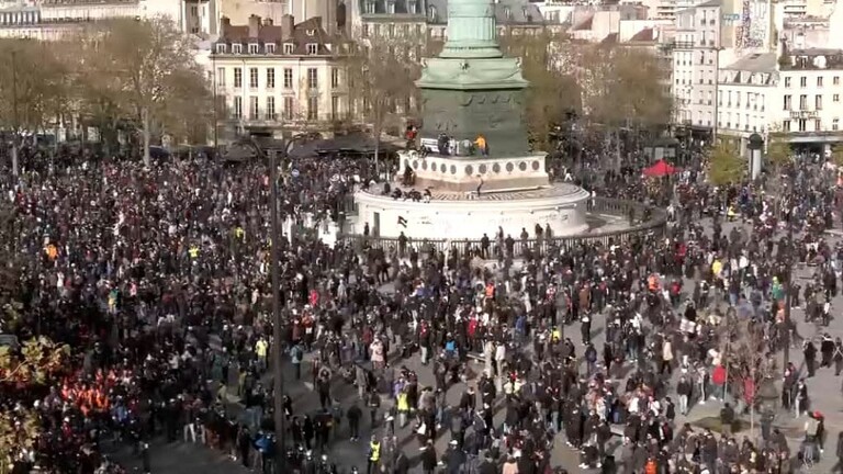 واندلعت اشتباكات في ساحة الباستيل في باريس، وهي نقطة النهاية للمظاهرة ضد إصلاح نظام التقاعد، وتم إطلاق الألعاب النارية وكذلك الغاز المسيل للدموع.