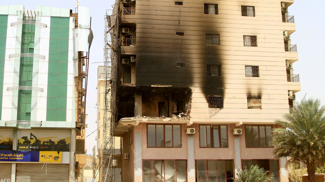 وفي السوق الرئيسية في بحري، تعرضت العديد من المباني لأضرار بالغة واشتعلت بها النيران جراء القتال والضربات الجوية.