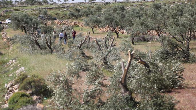 مستوطنون يحطمون 155 شجرة زيتون غرب نابلس