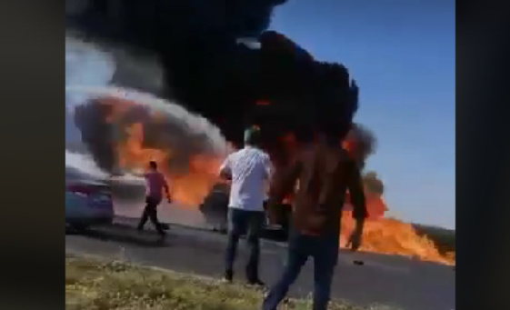 وفاة 3 اشخاص.. شاهد حادث تصادم صهريج نفطي ومركبة واشتعالهما على طريق البترا في اربد#السوسنة pic.twitter.com/DGZZAKnk1Y