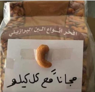 السوسنة - تداول بعض رواد مواقع التواصل الاجتماعي صورة لاعلان تجاري يعرض حبة كاجو مع كل كيلو قهوة، حيث أبدوا استغرابهم وتعجبهم من العرض.