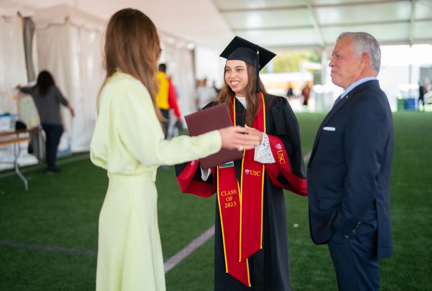 وحضر جلالة الملك عبدالله الثاني وجلالة الملكة رانيا العبدالله، وسمو الأميرة إيمان بنت عبدالله والسيد جميل ترميوتس حفل تخريج الأميرة سلمى بن الملك عبد الله، من جامعة كاليفورنيا الجنوبية في الولايات المتحدة الأمريكية.