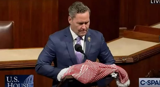 نائب أمريكي يضع الشماغ الاردني أمامه أثناء خطابه