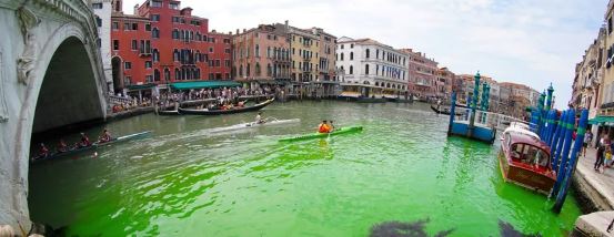 السوسنة- أعلنت إدارة الإطفاء في إيطاليا أن المياه في القناة الرئيسية بمدينة البندقية تحولت إلى اللون الأخضر الفاقع، الأحد، في المنطقة القريبة من جسر ريالتو وإن السلطات تسعى لمعرفة السبب.