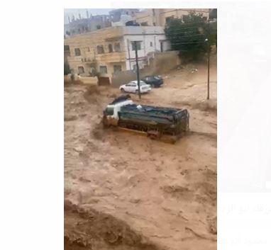 بالفيديو .. السيول تجرف مركبات في الزرقاء